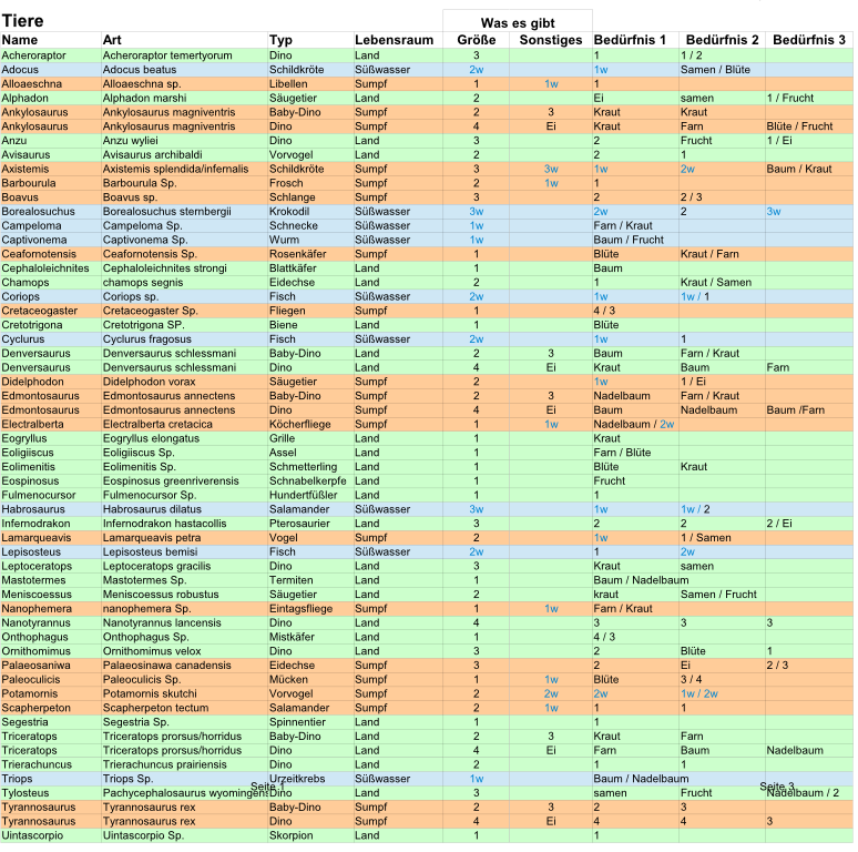 Endlich ist es soweit: Die Artenliste für den Prototypen von Paleogon ist fertig!
